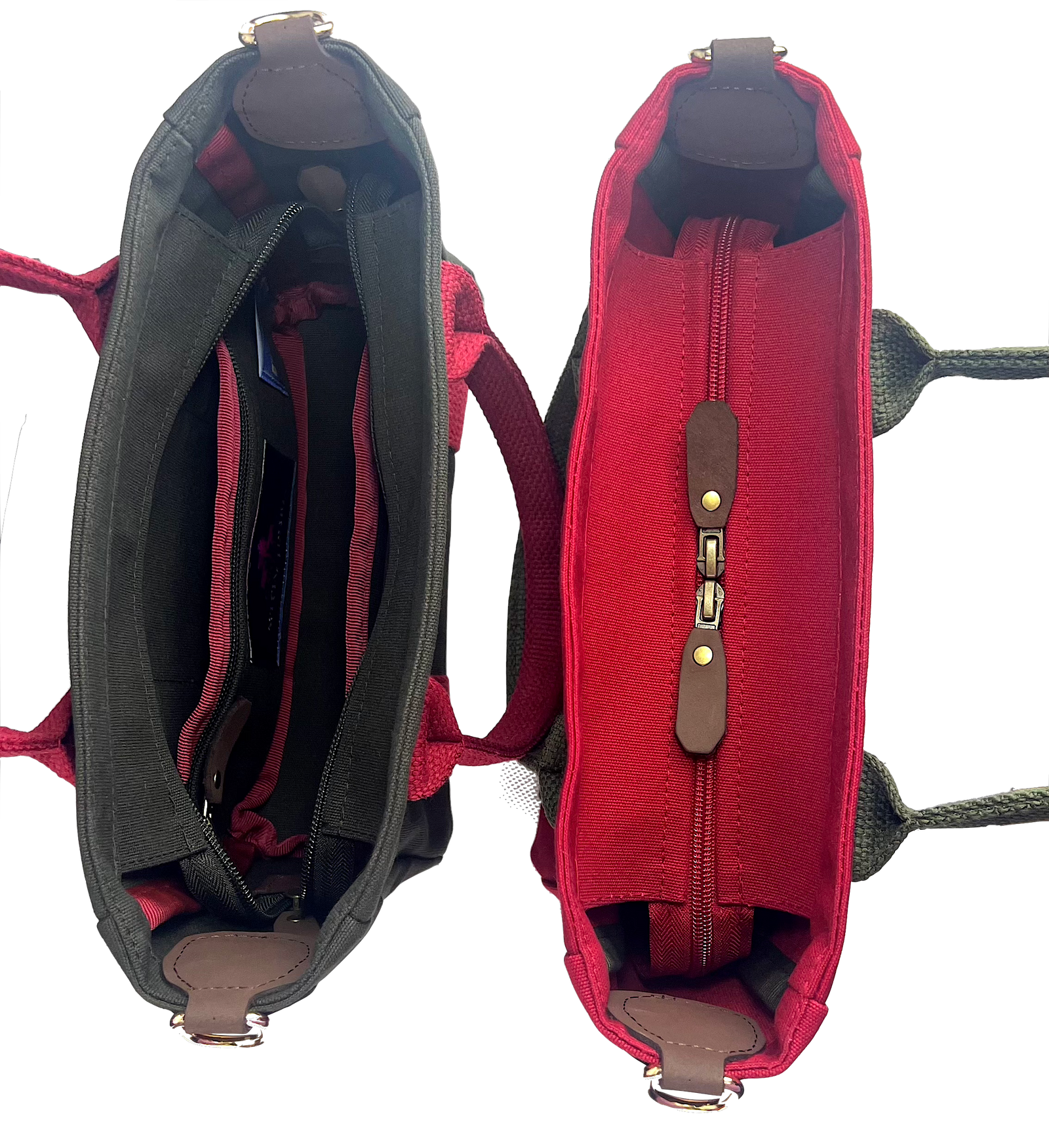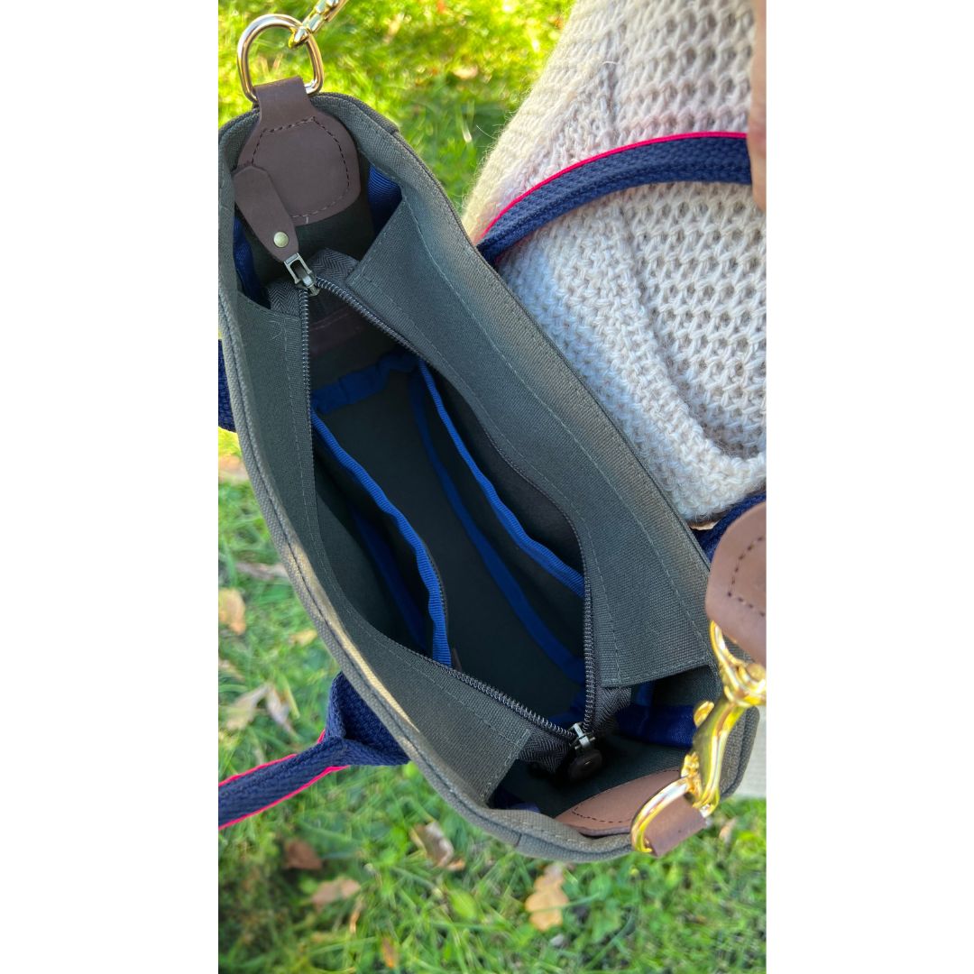 Die Tasche hat oben einen Reißverschluss, der sich sicher verschließen oder einfach wegklappen lässt, wenn er nicht benötigt wird.