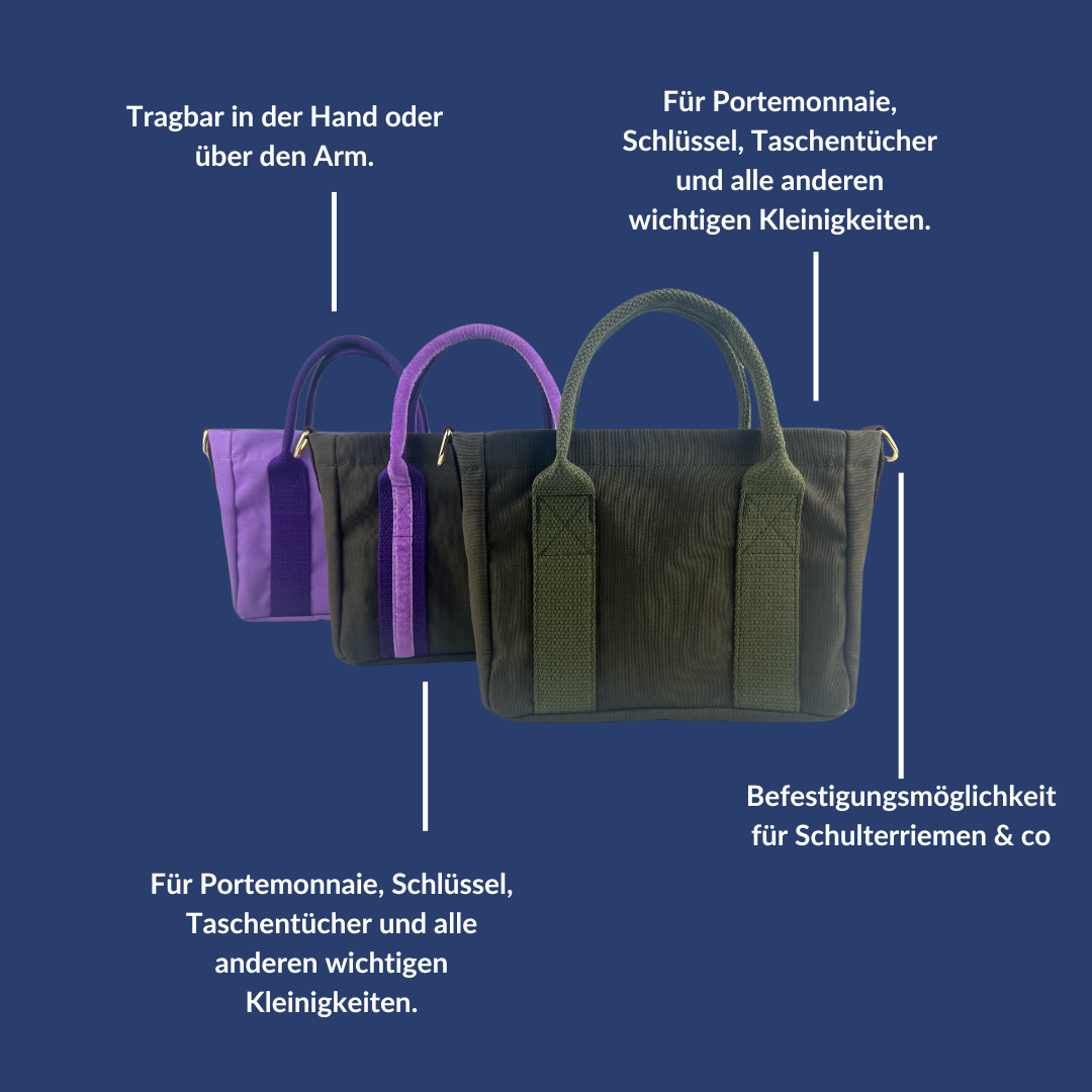 Die Mini Bag - unsere praktische Handtasche aus Canvas & hochwertigem Baumwoll Gurtband.