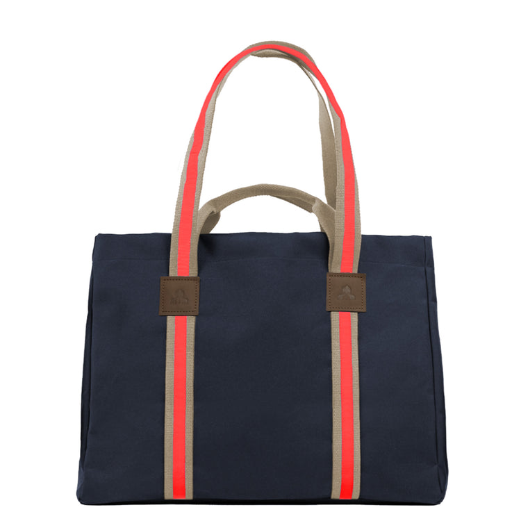 SHOPPER STRIPES KODURA -L- Dunkelblau mit Beige & Koralle