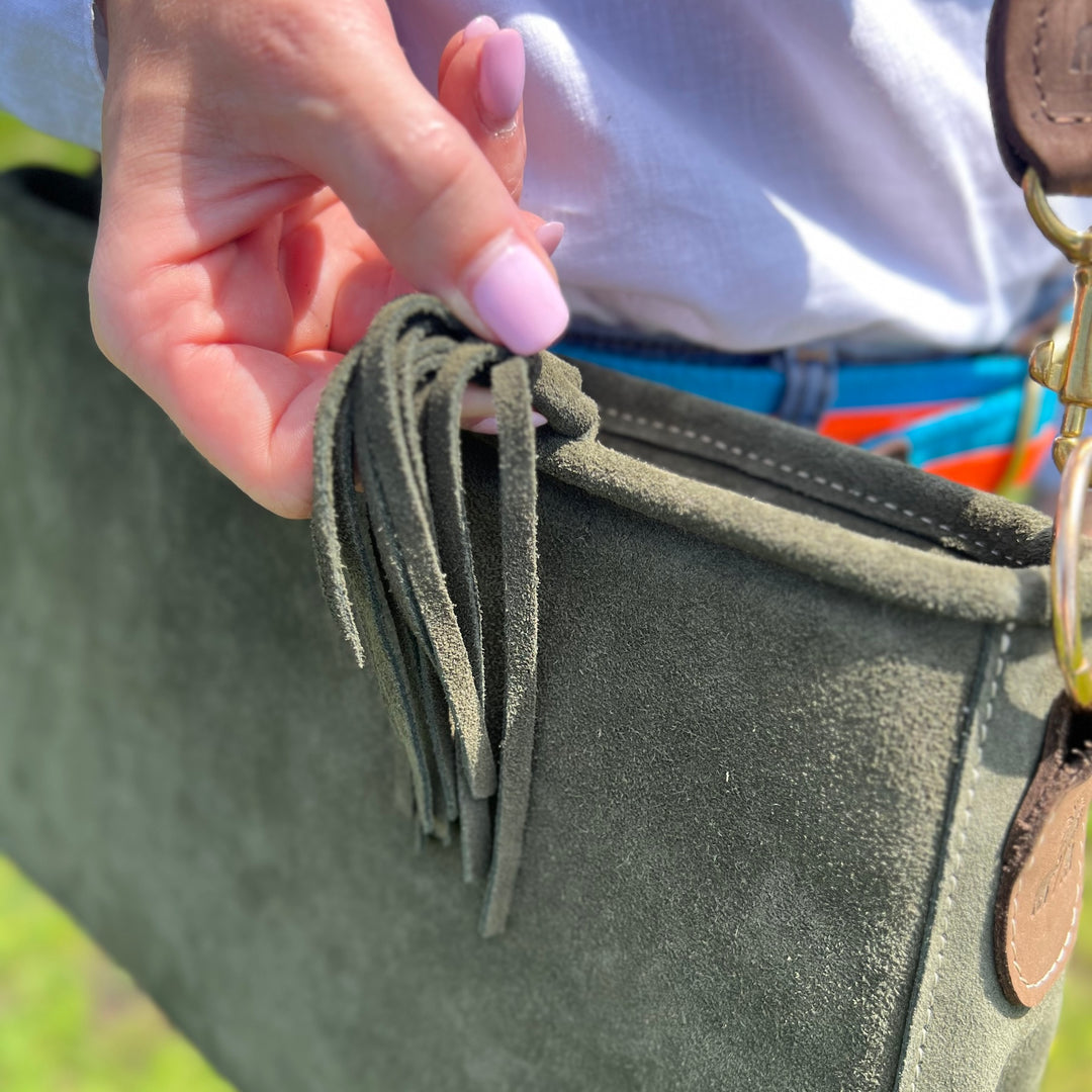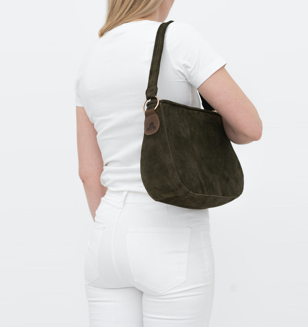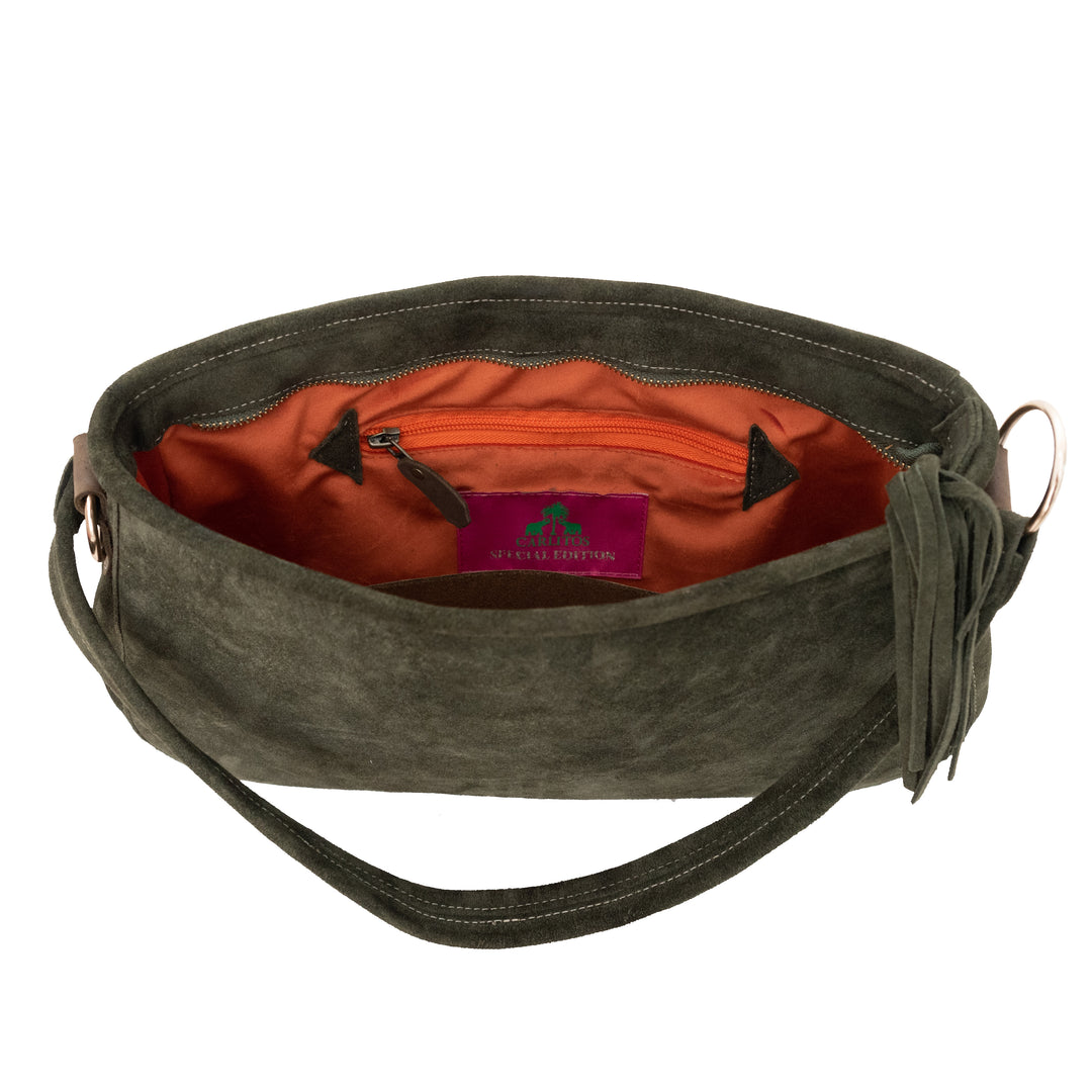 Torebka wykonana z zamszowej skóry bydlęcej .
