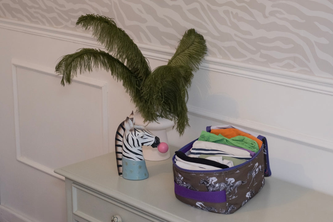 Falten Sie Ihre Kleidungsstücke passend zur Größe des Organizers. Verstauen Sie diese hintereinander. Jedes Kleidungsstück ist so sichtbar übersichtlich und durch die Komprimierung sparen Sie Platz!