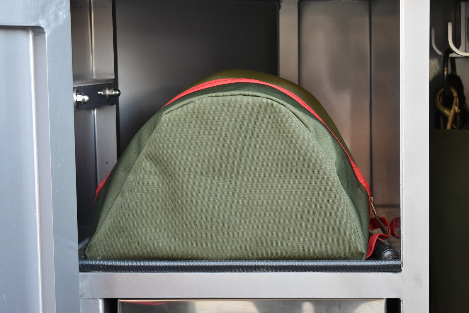 Dzięki dużej wentylacji od spodu czapka jeździecka może dobrze wyschnąć po użyciu, a wewnątrz kasku nie pozostaje wilgoć. Długi zamek błyskawiczny ułatwia dostęp do torby.