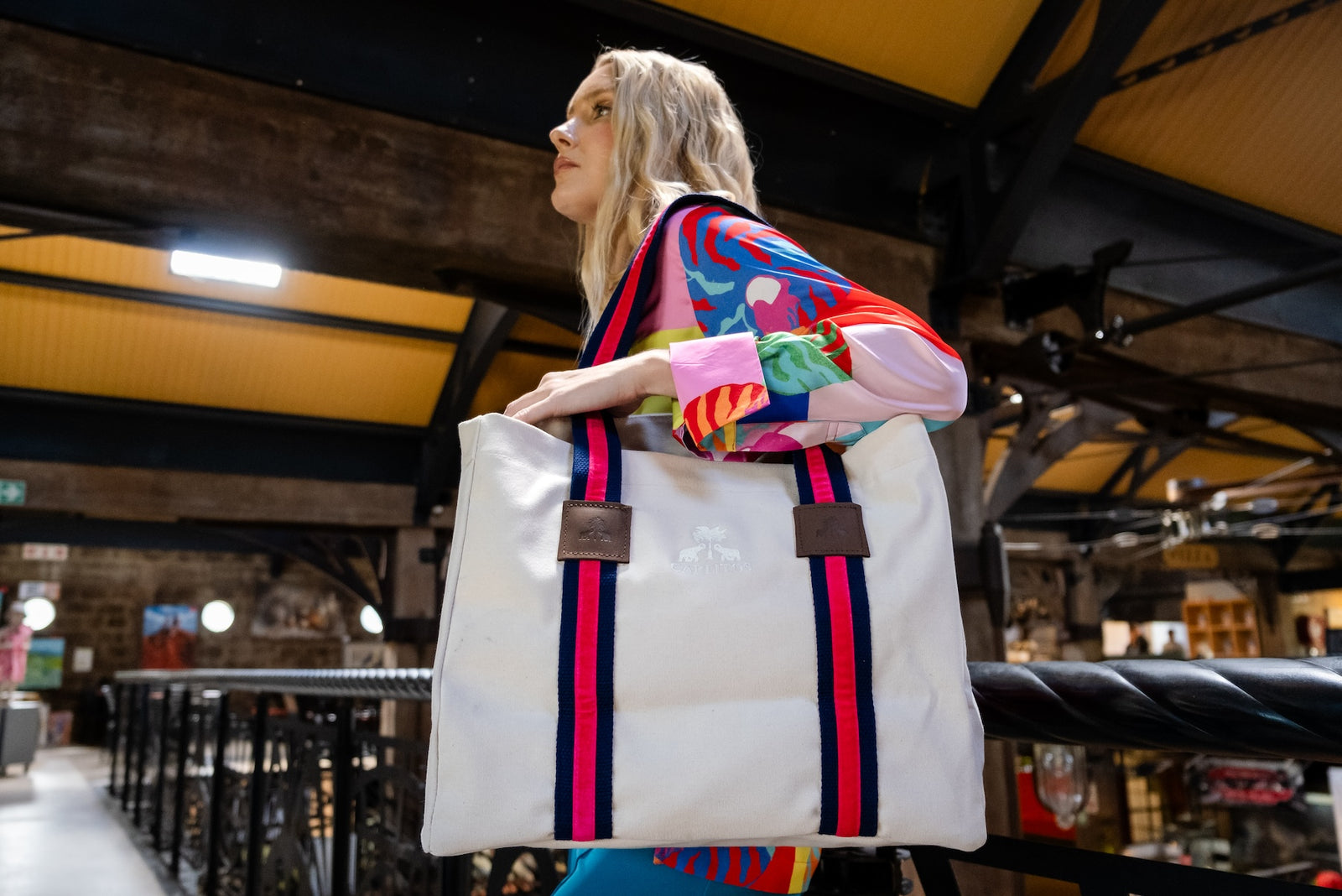 Durch die seitlichen Druckknöpfe lässt sich der Shopper in der Größe anpassen.