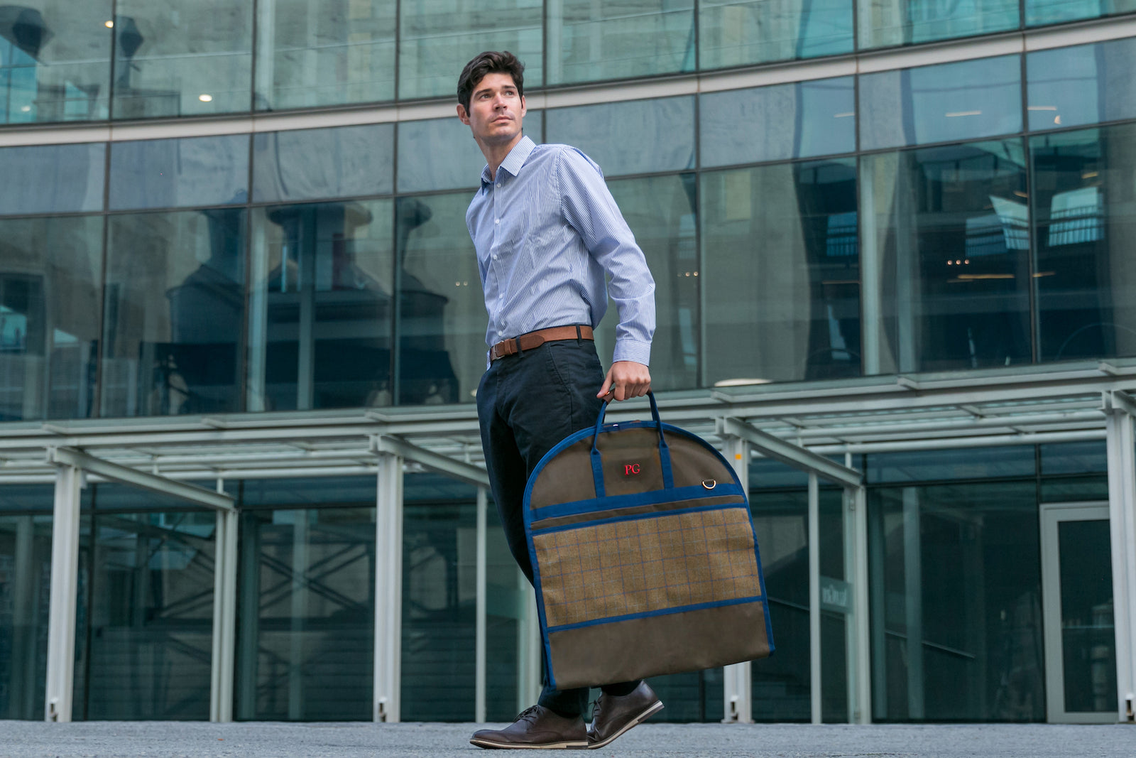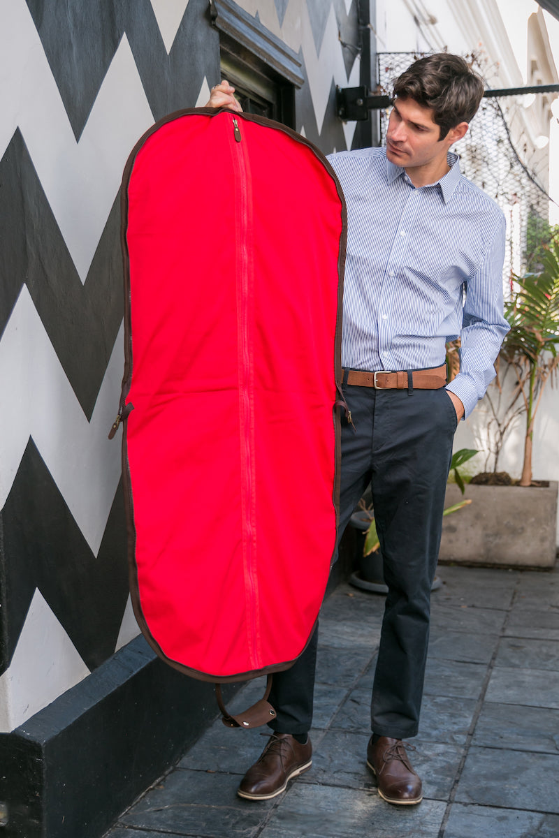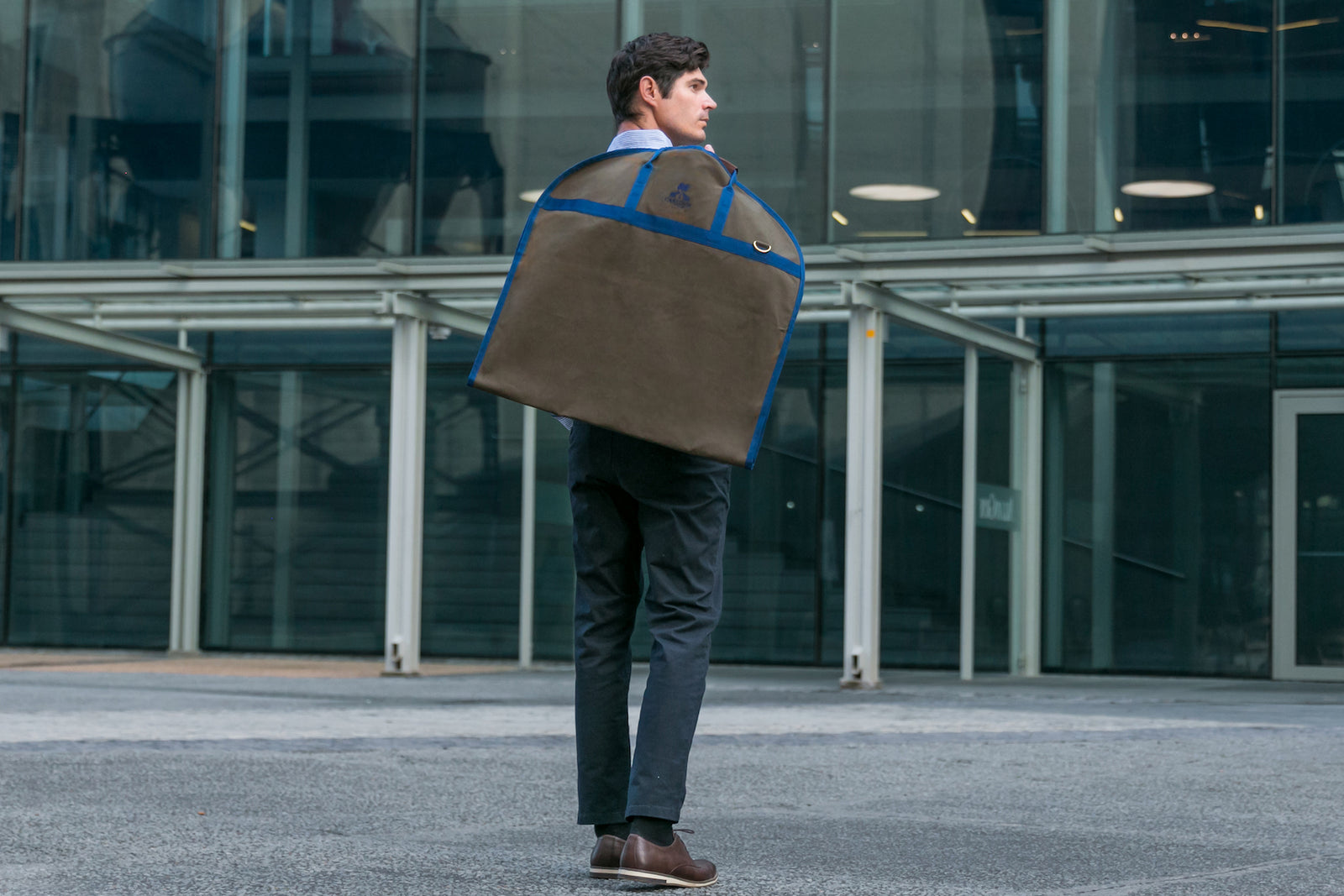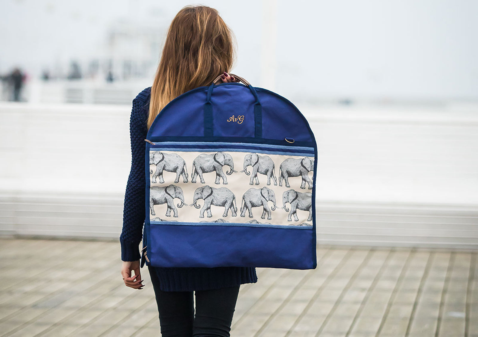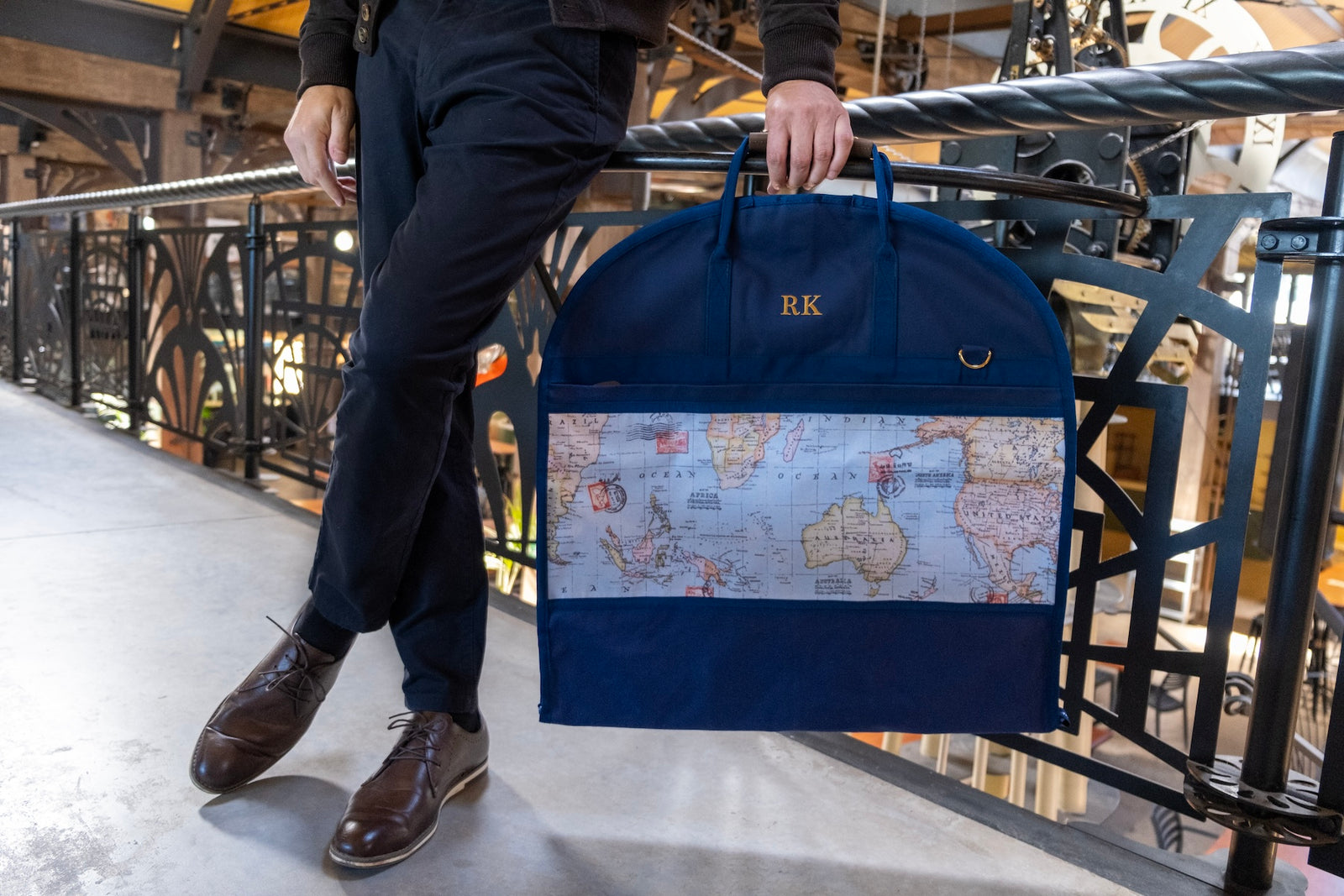 2 Möglichkeiten zur Aufhängung von Kleiderbügeln. Zum Transport den Kleidersack einmal falten und den Reißverschluss verschließen. Der dadurch entstehende Innenraum kann hervorragend für weitere, zusammengelegte Kleidungsstücke, Kulturtaschen und co genutzt werden. An der Außenseite befindet sich gut erreichbar eine großräumige Reißverschlusstasche, die ideal zur Aufbewahrung von Accessoires genutzt werden kann. Das Außenmaterial aus Baumwoll- Canvas ist sehr strapazierfähig und hat eine wasser- und schmutzabweisende Beschichtung. Edle und schicke Details, sowie auf Wunsch Personalisierung mit Initialen, Namen oder Logos, machen ihn einzigartig. Befestigungsmöglichkeit für einen Schulterriemen.